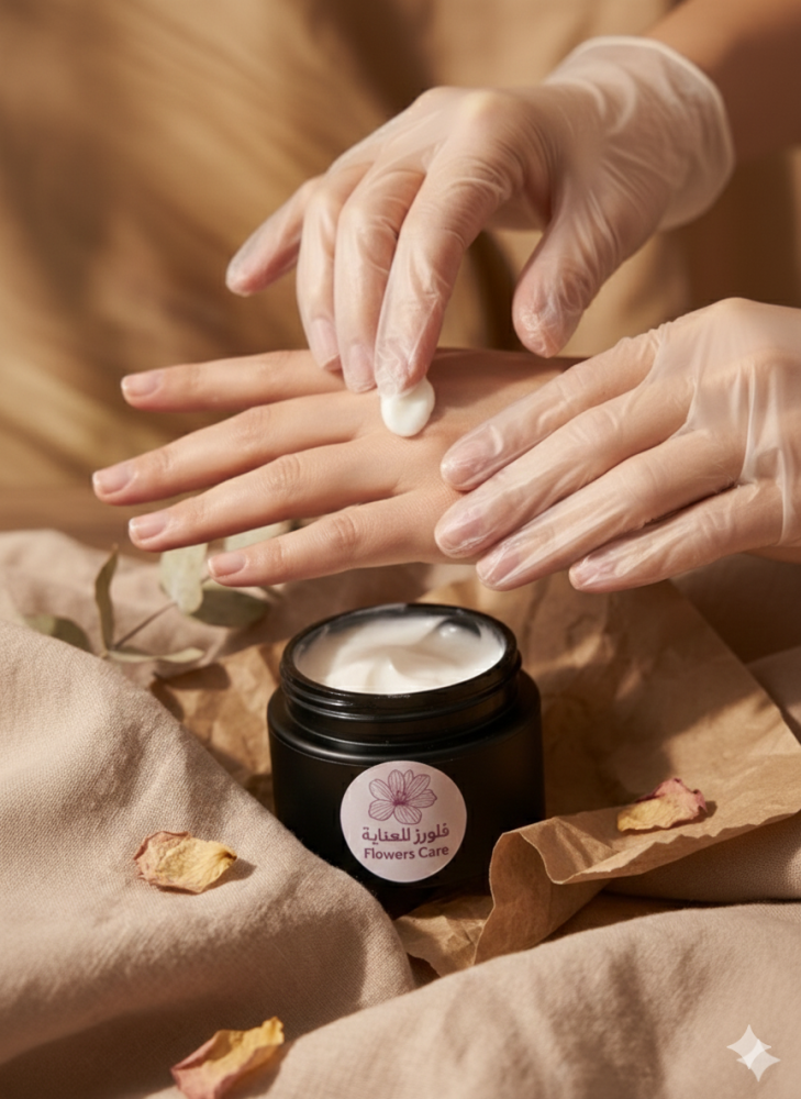 - يفضل لبس قفاز لليدين وتركه ثلاث ساعات ثم يغسل